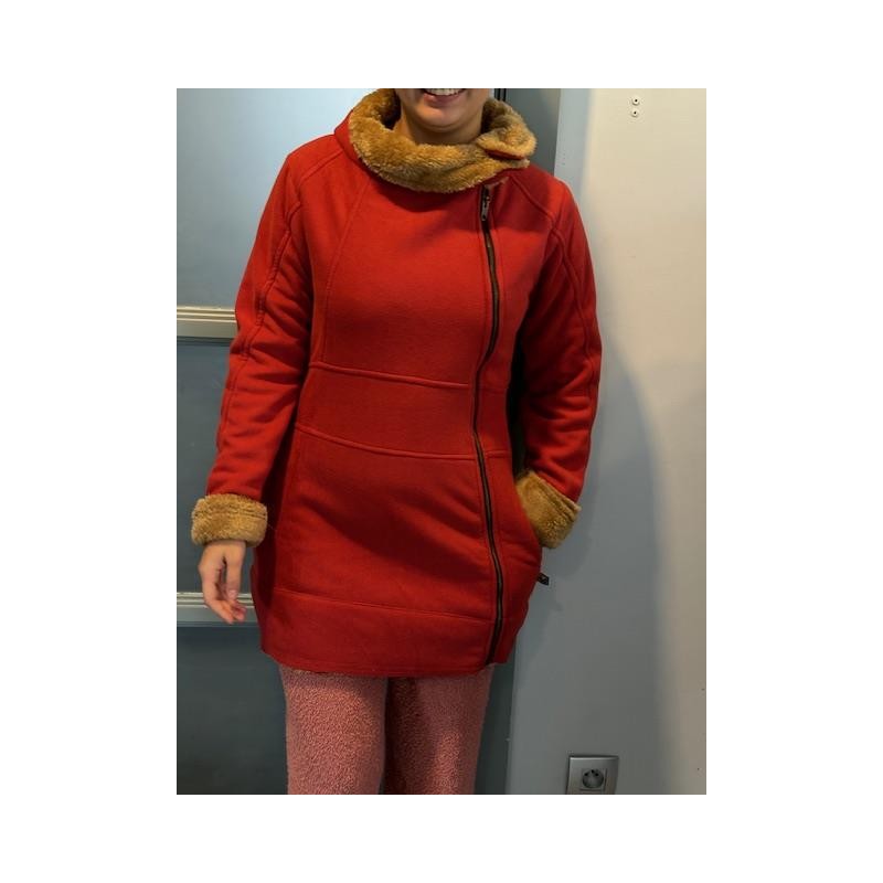 MANTEAU COURT FORME PRES DU CORPS TISSU EXTERIEUR POLAIRE ET FAUSSE FOURRURE DEDANS
