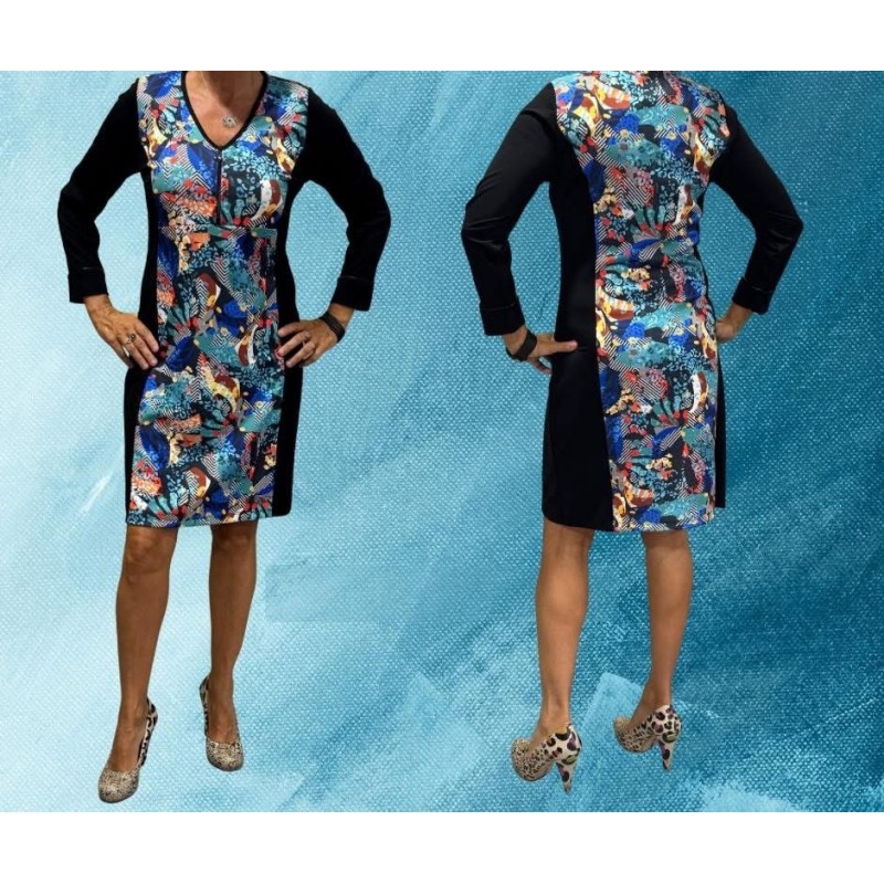 ROBE MANCHE 3/4 COL V ZIP DEVANT BANDE UNI COTE